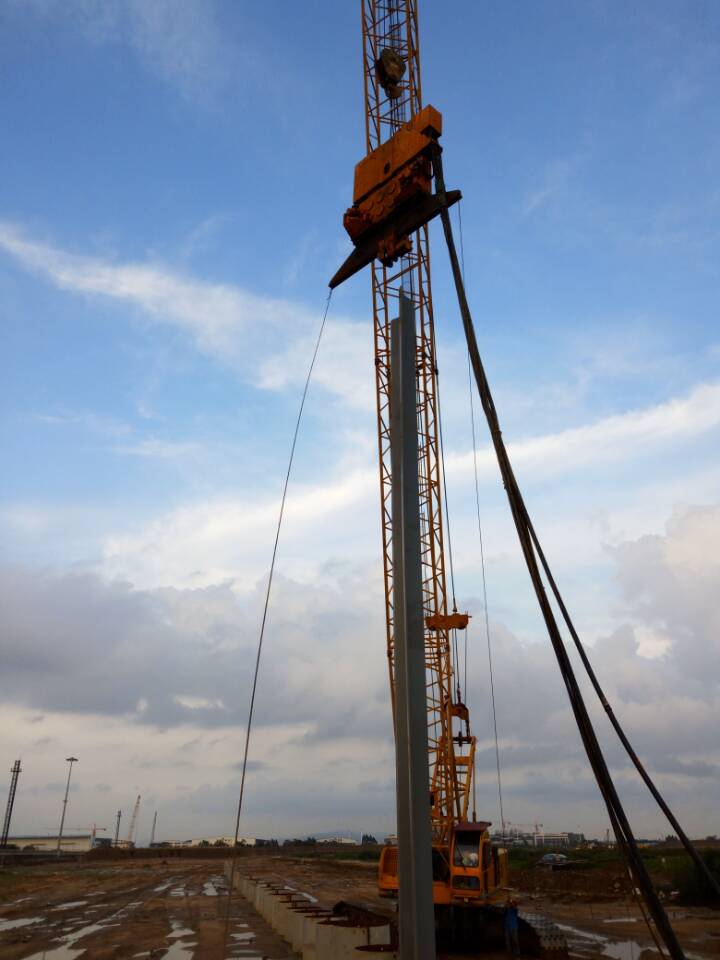 Adopts hydraulic power station as thehydraulic power source, through the high frequency vibration from the vibration box, drive the pile into the soil with low noise, high efficiency, no damage when turning, etc.